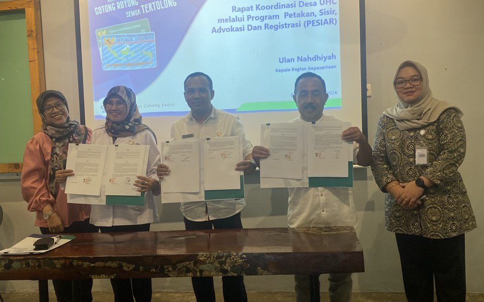 Bertempat di Cafe D’Class Gelato & Coffe PJKA Kota Blitar, Kepala Desa Tembalang (Bpk. Suwendah Catur Woko) bersama Sekretaris Desa Tembalang (Ibu Betty Kusuma Wardani,S.Kom) menghadiri Pertemuan bersama BPJS Kesehatan Cabang Blitar dalam rangka Pembahasan dan penandatanganan kerjasama tentang pelaksanaan program pesiar ( pemetaan,sisir, avokasi dan registrasi ) di Desa Tembalang kecamatan Wlingi kabupaten Blitar
