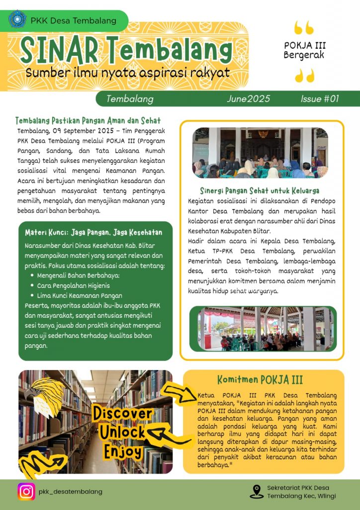 pada tanggal 09 september 2025 tim penggerak PKK desa Tembalang melalui Pokja III telah menyelenggarakan kegiatan sosialisasi vital mengenai keamanan pangan. aca ini bertujuan untuk meningkatkan kesadaran dan pengetahuan masyarakat tentang pentingnya memilih, mengolah dan menyajikan makanan yang dari bahan berbahaya.